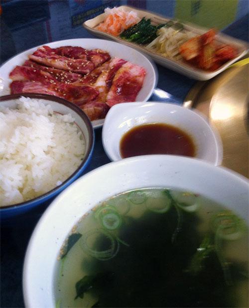 ▼わかめスープやナムルがセットです・・・