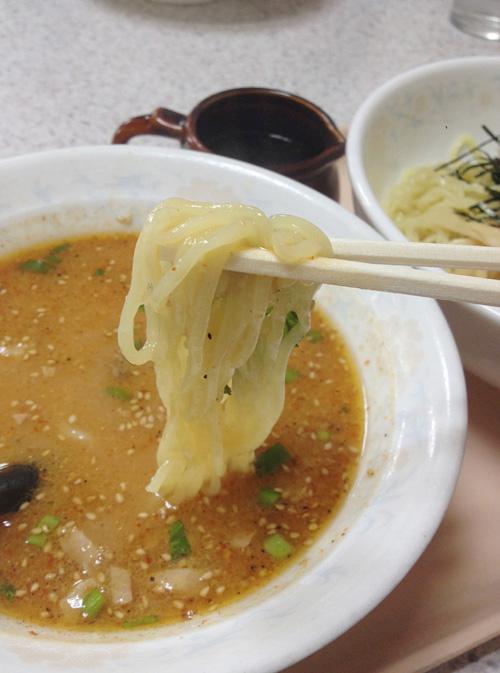 ▼つるつるの麺を辛味噌ベースのつけダレに・・