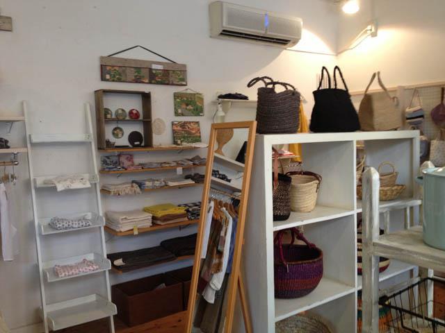 バッグや洋服が並んでいます。