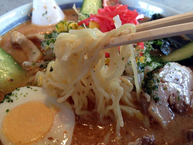 冷たいみそラーメンはコシのある細麺が特徴です。
