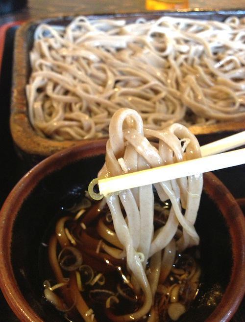 ▼黒く太い手打ち蕎麦