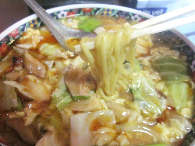 ▼中太麺をスープにからませて…