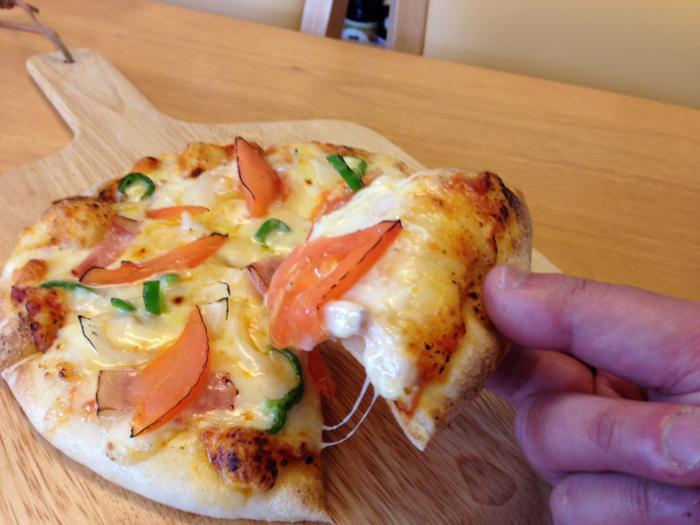 ▼日本酒にも合う餅のようなピザです