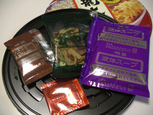 具材です!辛味噌や支那竹、かやく、味噌の液体スープなど入ってます。