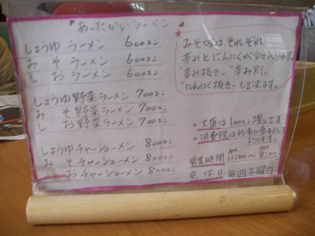ひろやのメニューです。片面だけ。