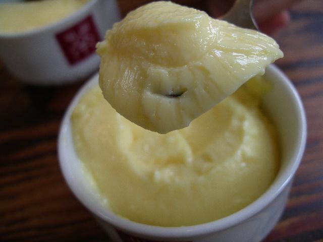 カラメルなどはトッピングされていない、、卵の風味がたっぷり楽しめるとってもプレーンなプリンです。