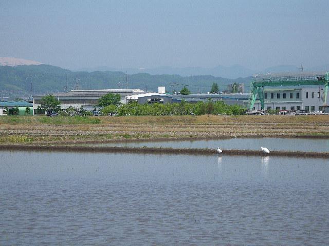 西部工業団地の南側に位置します。月山をバックに水田には白鷺がいました。