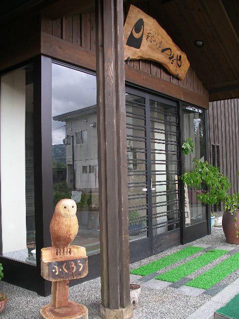 木彫りのフクロウがお出迎え。