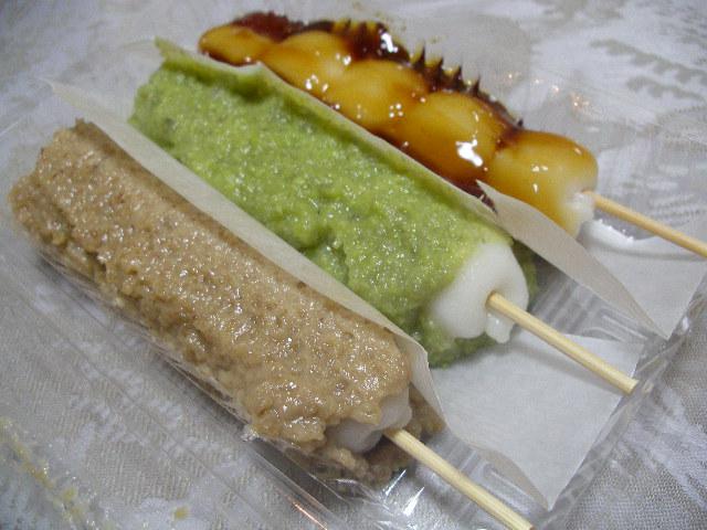しょうゆ、じんだん、くるみ、あんこ、ごま等あります。
