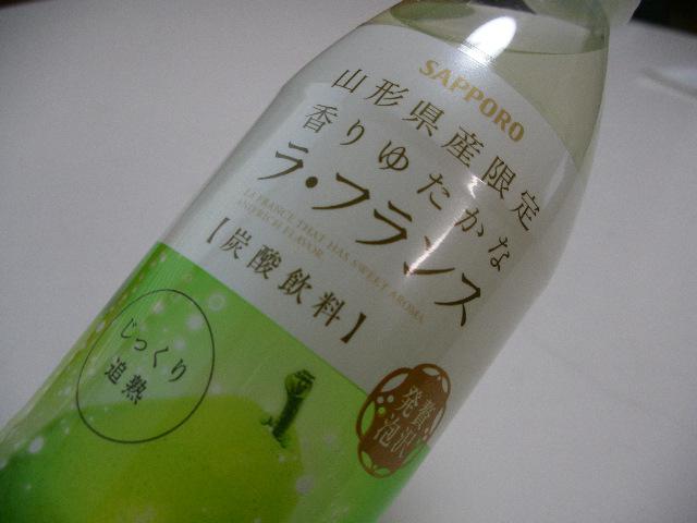▼じっくり追熟させた山形県産ラ・フランスを限定使用した炭酸飲料