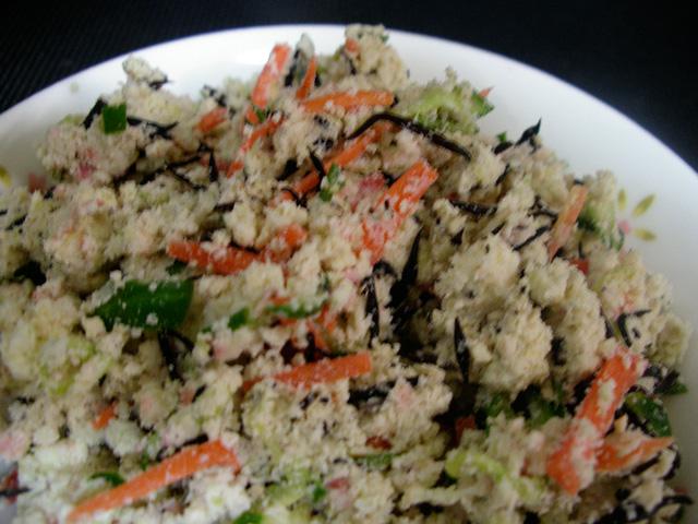 紅大豆やヒジキやキュウリ、ニンジン等の入ったヘルシーなサラダです。