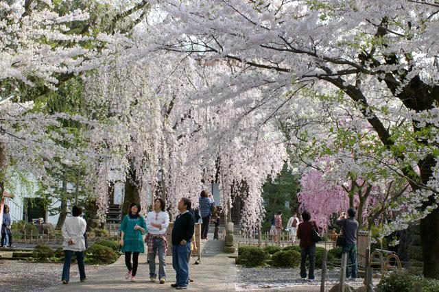 本堂前のしだれ桜とソメイヨシノの迫力に圧倒。