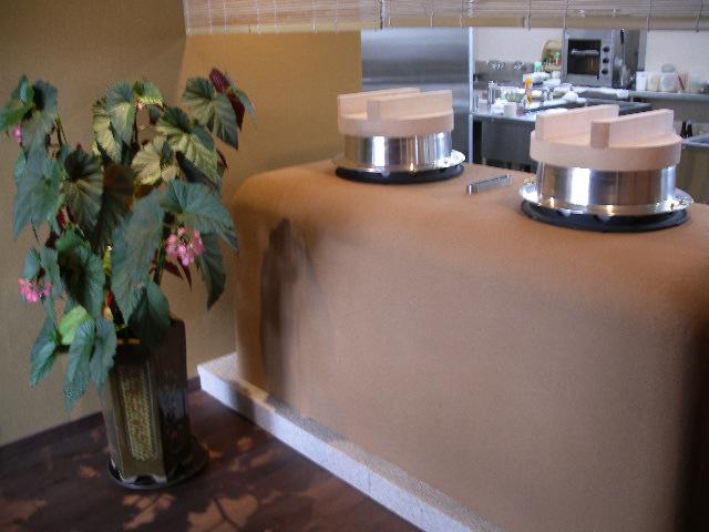 玄関に入ると、二つのごはんを炊く大きなお釜があります。