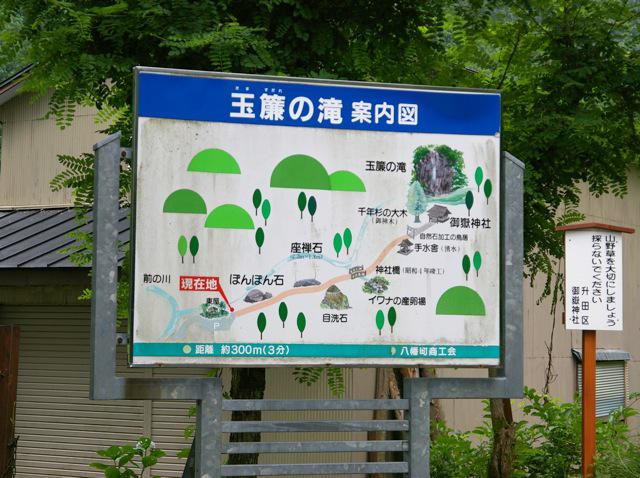 玉簾の滝への案内板。遊歩道が整備されています。