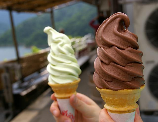 写真は「チョコ」と「ずんだ」の月山ソフトクリームです。