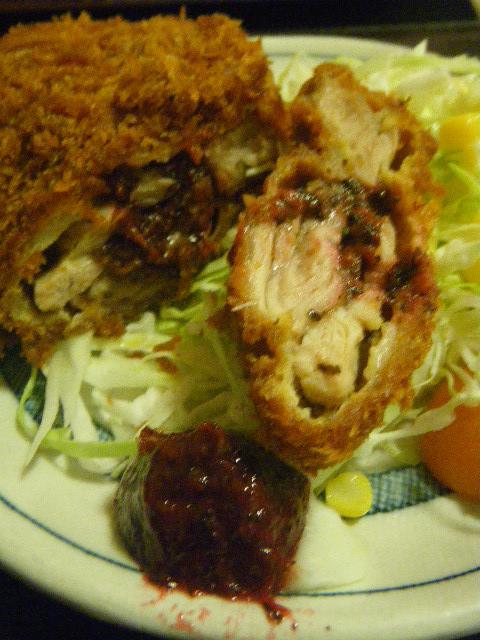 鶏カツの中に梅がたっぷり。