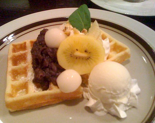 七日町のシャンソン物語《あずきワッフル&バニラアイス》です。