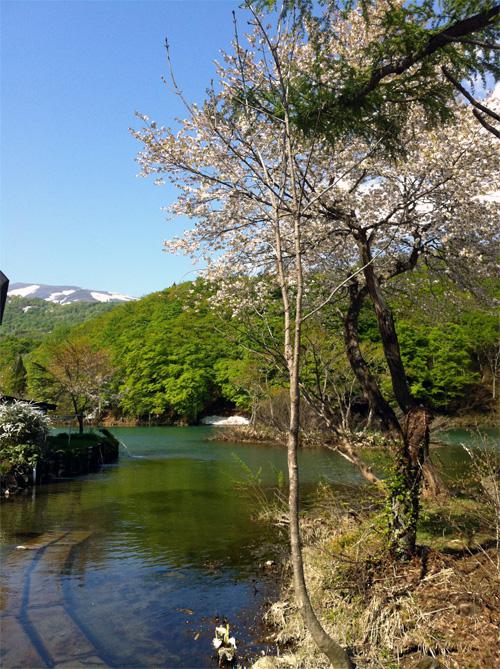 ▼五色沼《月山の雪と桜》西川町志津温泉