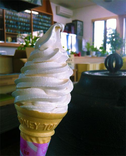 オリジナルそばソフトクリーム(200円)です。