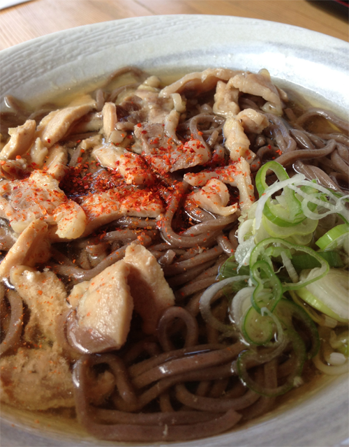 黒くて太目のお蕎麦にコリコリの親鳥。