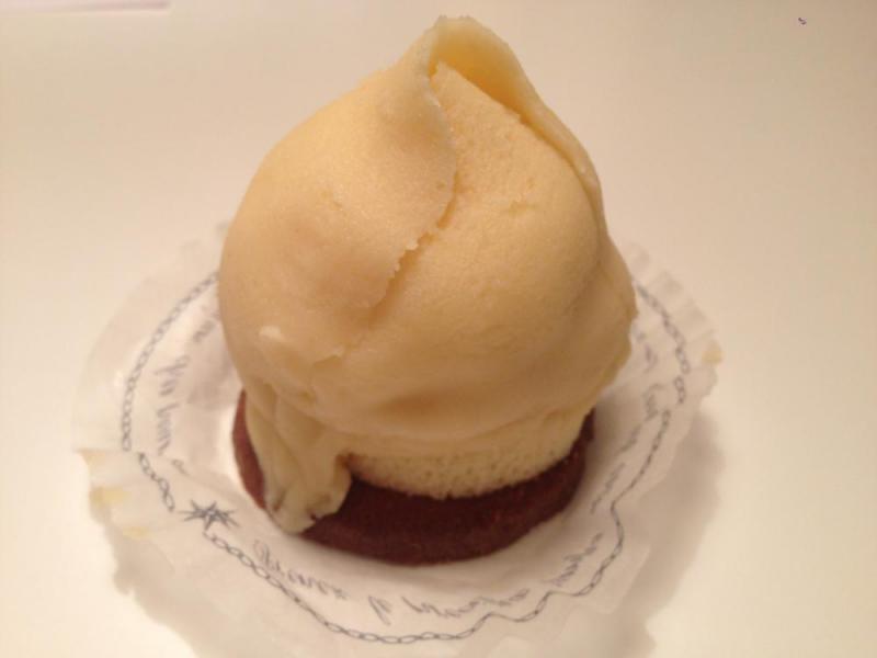 普通のモンブランはマロンペーストをそうめんのように糸状に絞り出した形状が一般的ですが、こちらのモンブランはマロンペーストを平たく伸ばし、まるで蕾のようなを形状をしております。