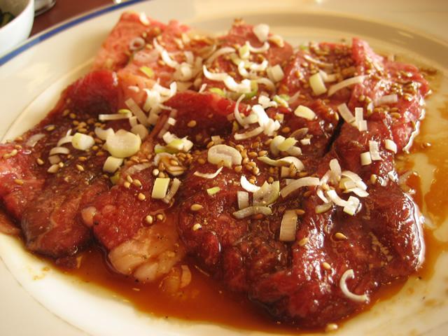 山形市花果苑の《ボリュームランチ》は、やわらかい山形牛のお肉に、セットのライス・サラダ・お味噌汁・ドリンクがついたリーズナブルなランチセットです。タレは花果苑特製の「やきにくだれ」と「おろしだれ」。両方の食べくらべが楽しめます。