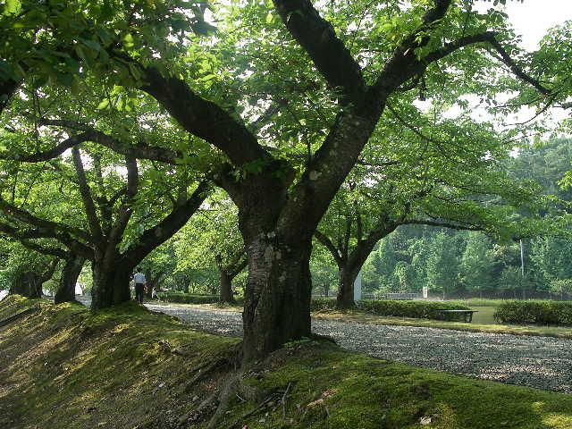 東根市民の憩いの場の「堂の前公園」の《約50本の桜並木》夏の光景です。