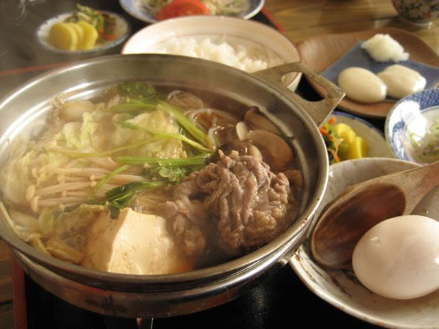 山形市あかねヶ丘、食堂喜楽(きらく)のあっつあつすき焼きランチです。