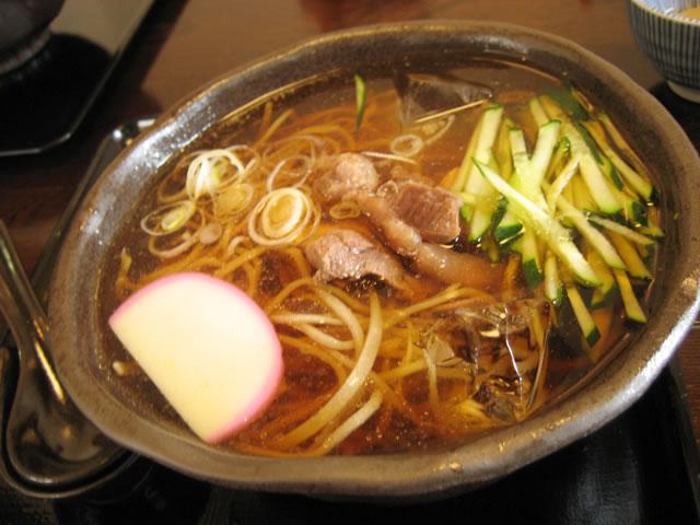 山形市の霞城公園南門沿い、日月庵の《冷し地鶏そば》です。