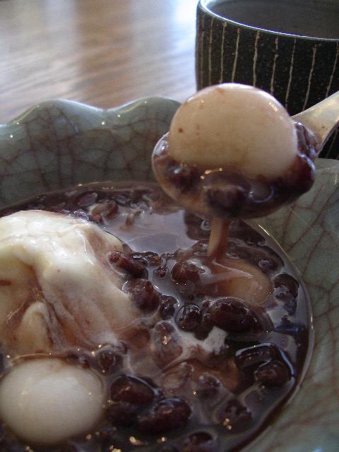 旅篭町の甘味処「榮玉堂」のカフェスペースでいただける《白玉クリームぜんざい》です。