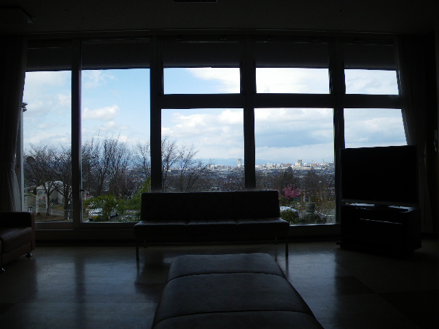 ロビーは山形市内を一望できます。 また大広間(有料)でゆったり寛ぐこともできます。