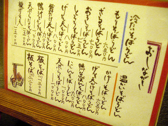 やま七のお品書きです。