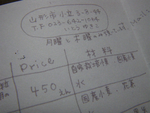 月のぱん屋 山形市小立3-8-44 TEL/FAX 023-642-1064 代表/いとうゆきこ