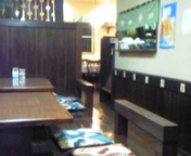 店内右手が洋風お座敷で左手がフロアにテーブル席が並んでいます。