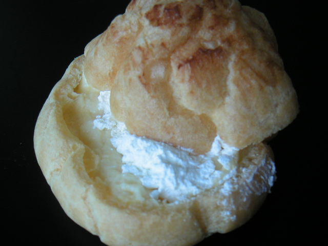 これはパルシェのシュークリームです。 甘さが控えめのカスタードと生クリームが入ってボリューム満点です。