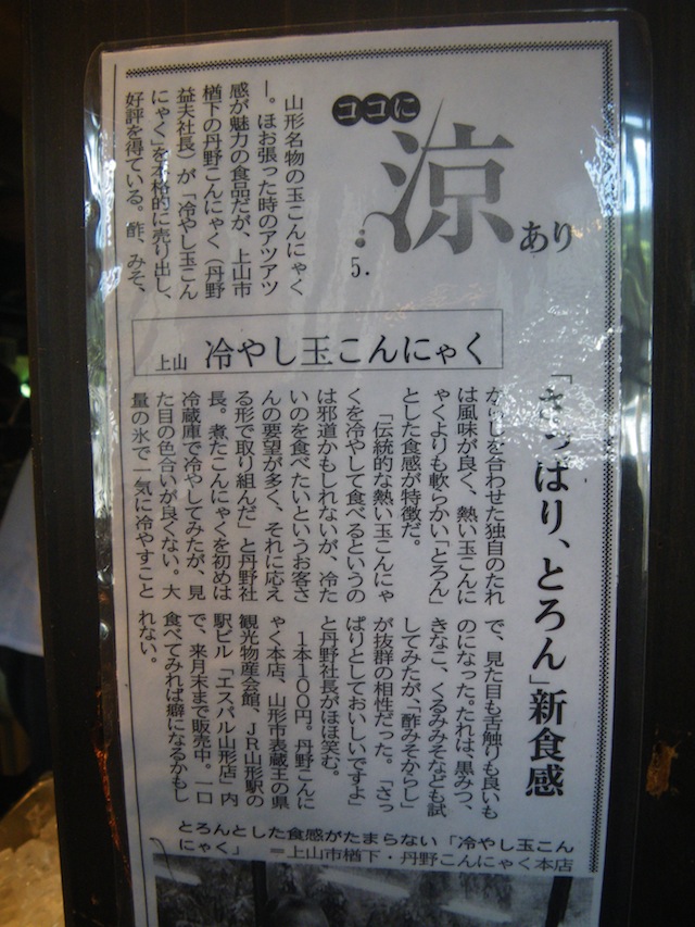 丹野こんにゃく番所 山形県上山市楢下1233-2 TEL 023-674-2351 定休日:火曜日 営業時間:11:00〜17:00