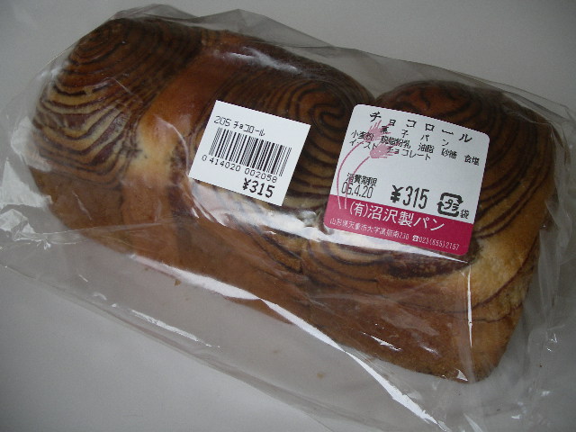 写真はソフトな「チョコロール」です。 有限会社沼沢製パン 山形県天童市大字高擶南230 TEL 023-655-2157