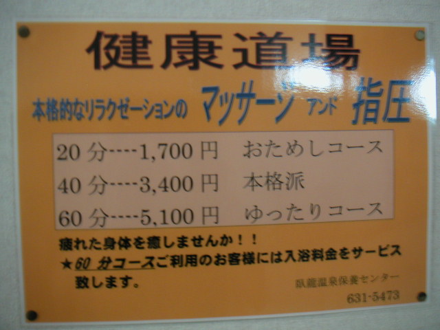 健康道場、マッサージサービスの張り紙が。