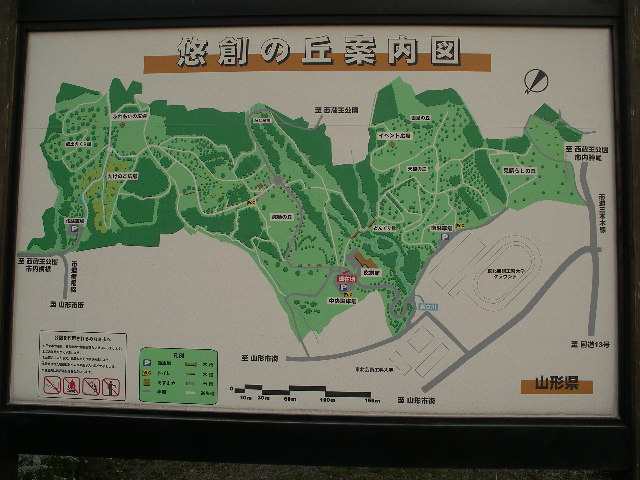 悠創の丘は、“自然と人が共感し、創造する丘”をコンセプトとして整備された公園です。里山の面影を残した環境の中に、散策が楽しめる遊歩道 3,800m、野外レクリエーションのできる芝生広場などを配置し、山形盆地が一眺でき、遠くは月山や朝日連峰の眺望、澄み切った夜空には満天の星空も体感できます。また、公園内の悠創館は芸術作品等を発表できる展示室や研修室としてご利用いただけます。 →詳しくは