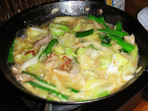 野菜から出る水だけで煮込みます。 最後に味の良い味噌と混ぜていただきます。