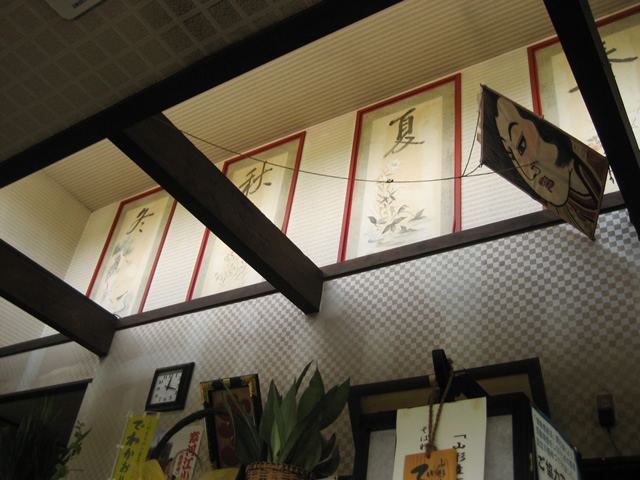 特徴的な天井。「春夏秋冬」の筆文字と、凧。