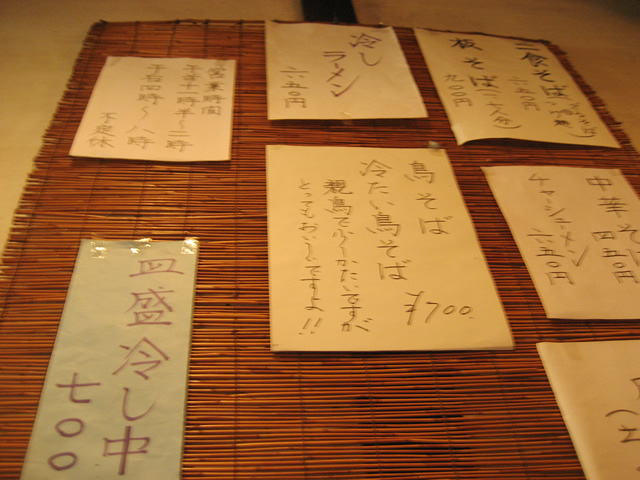 冷やしラーメン、冷たい鳥そば、冷やし中華、、夏季限定メニューです。
