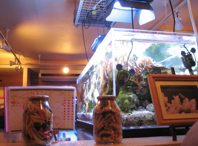 ライトアップされた水槽がとってもお洒落。