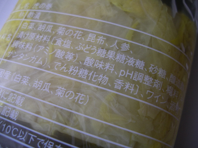 手間をかけた菊巻き漬物です。今年も人気の商品です。はくさい、きゅうり、にんじんを菊で巻いて昆布で結び甘酢で漬け込みました。