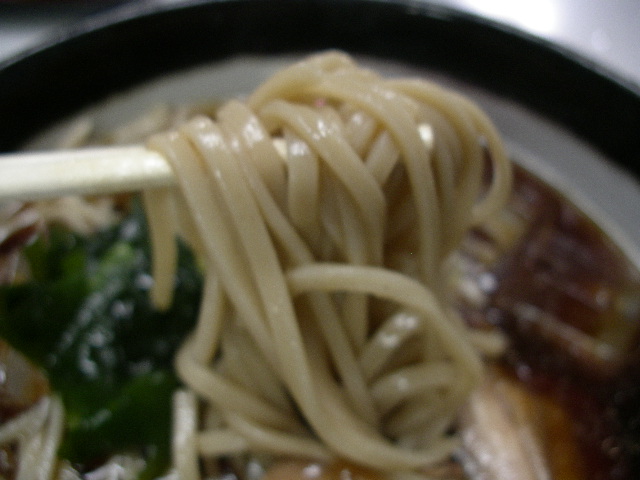 太め、コシあり、つるりとした麺です。