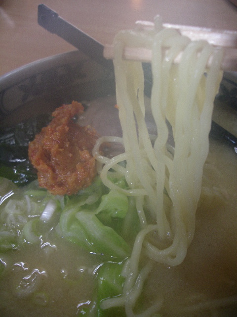 後味の良い白味噌スープとコシのある麺。茹でキャベツと柔らかチャーシューの相性もいいです。