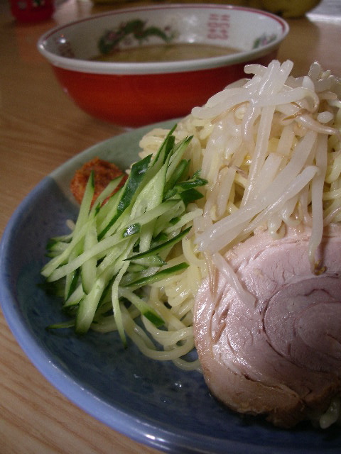 キュウリの千切りやフレッシュもやし付きのちょっと珍しいつけめんです。 ※参照