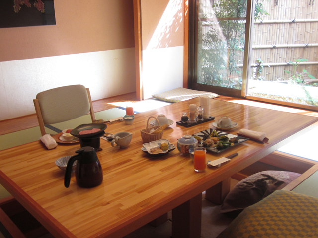 お客様1組1組毎に用意された個室で 朝食をゆっくりいただくことができます。 朝食は和食と洋食の 2種類から選ぶ事ができます。
