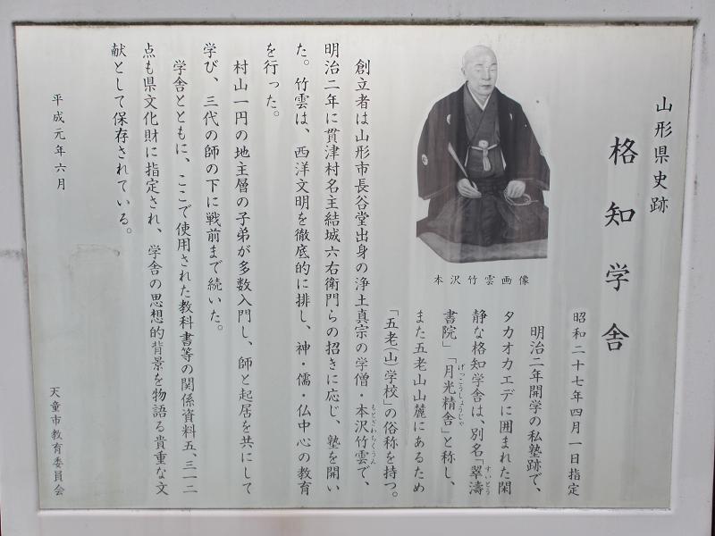 名称:格知学舎(かくちがくしゃ) 住所:山形県天童市上貫津74 開館時間:午前8:00〜午後5:00 入館料:200円 休館日:不定休 交通:JR奥羽線天童駅から自動車で10分 駐車場:「じゃがらむら」の駐車場を利用。 問い合わせ:023-653-7468