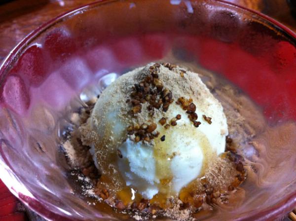 冷た〜いバニラアイスに蕎麦蜂蜜をたらし、